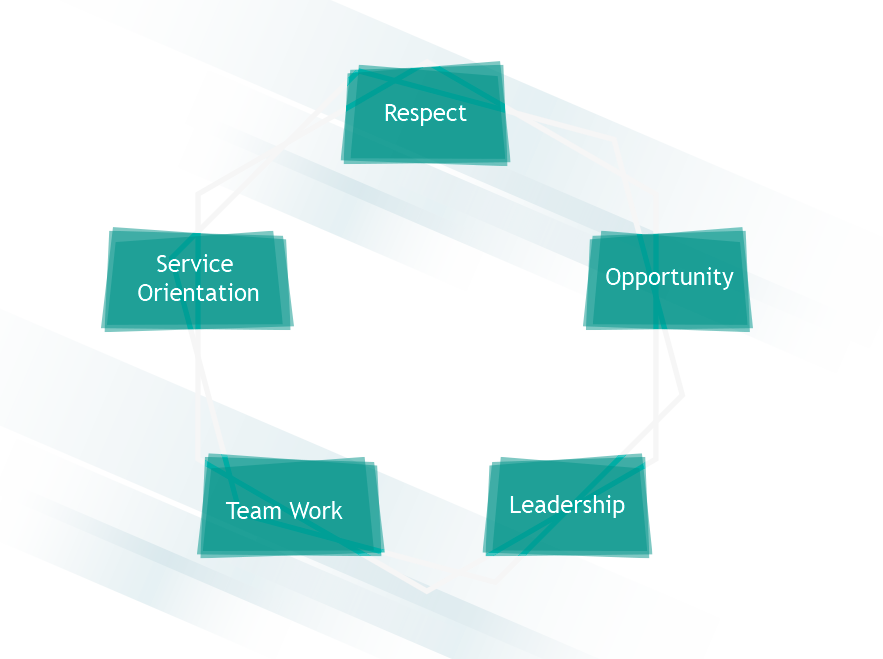 Service Orientation: We apply skills and knowledge to satisfy the needs and generate the maximum values for our external and internal customers. The quality and mysticism of the service we provide is the key of our success, and our greatest reward.